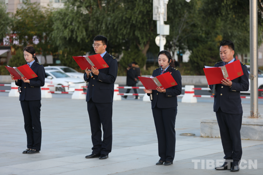 中國(guó)西藏網(wǎng)訊 在新中國(guó)成立75周年這一榮耀時(shí)刻,拉薩火車(chē)站舉行了一場(chǎng)莊嚴(yán)而隆重的升國(guó)旗儀式。10月1日上午8時(shí)整,雄渾的國(guó)歌聲奏響,駐站武警儀仗隊(duì)邁著整齊劃一的步伐,護(hù)衛(wèi)著五星紅旗走向國(guó)旗基座。在火車(chē)站干部職工的凝視下,五星紅旗冉冉升起,那是祖國(guó)繁榮昌盛的象征。