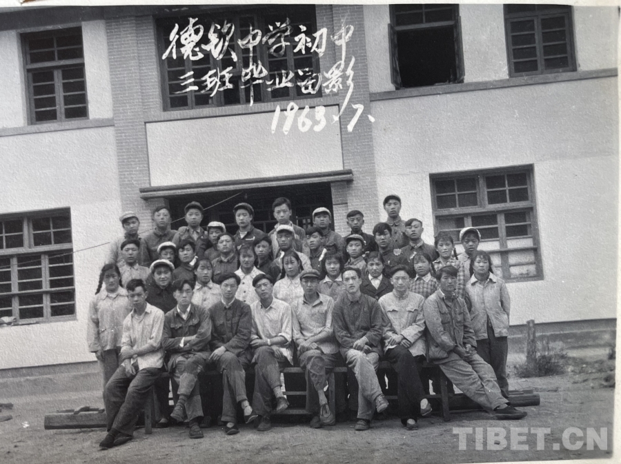 圖為1963年,訪談對象牛宿光(前排左二)與德欽中學(xué)初中三班畢業(yè)合影 供圖:李志農(nóng)