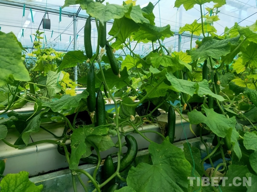 圖為八宿縣物聯(lián)網(wǎng)高效植物工廠種植的黃瓜 攝影:周晴晴