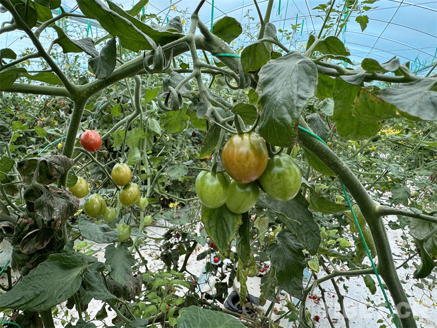圖為大棚內(nèi)無(wú)土栽培即將成熟的圣女果 攝影:王妍丹