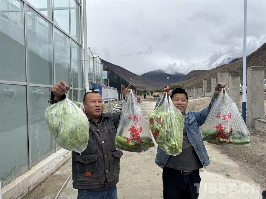 圖為八宿縣白瑪鎮(zhèn)附近的村民順路購(gòu)買大棚內(nèi)成熟的蔬菜瓜果 攝影:王妍丹