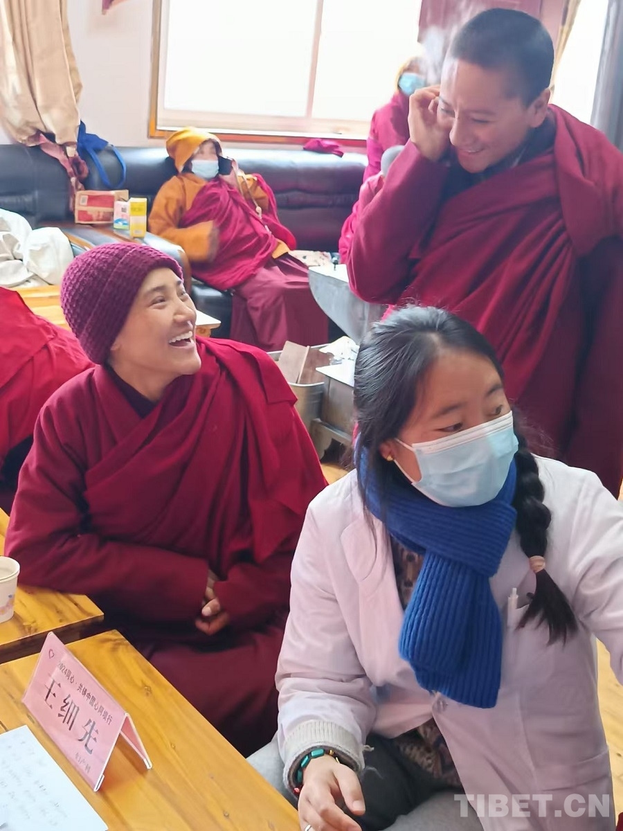 中國(guó)西藏網(wǎng)訊 10月26日,同心·共鑄中國(guó)心公益活動(dòng)義診專家組選派三名女專家走進(jìn)四川省阿壩藏族羌族自治州紅原縣瓦切鎮(zhèn)如意空行寺,為覺(jué)姆義診并開(kāi)展健康科普講座。