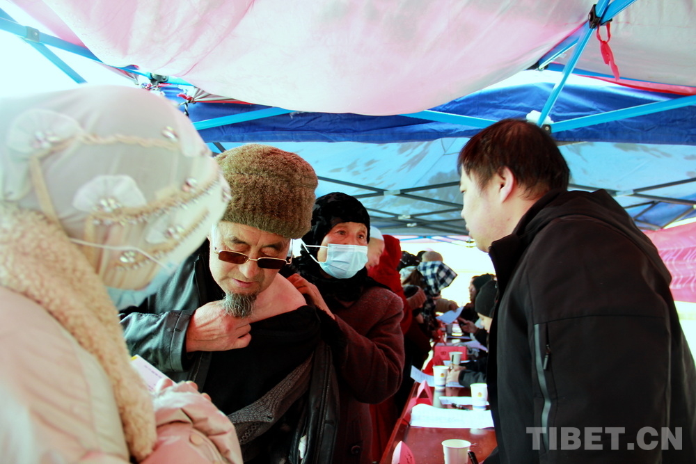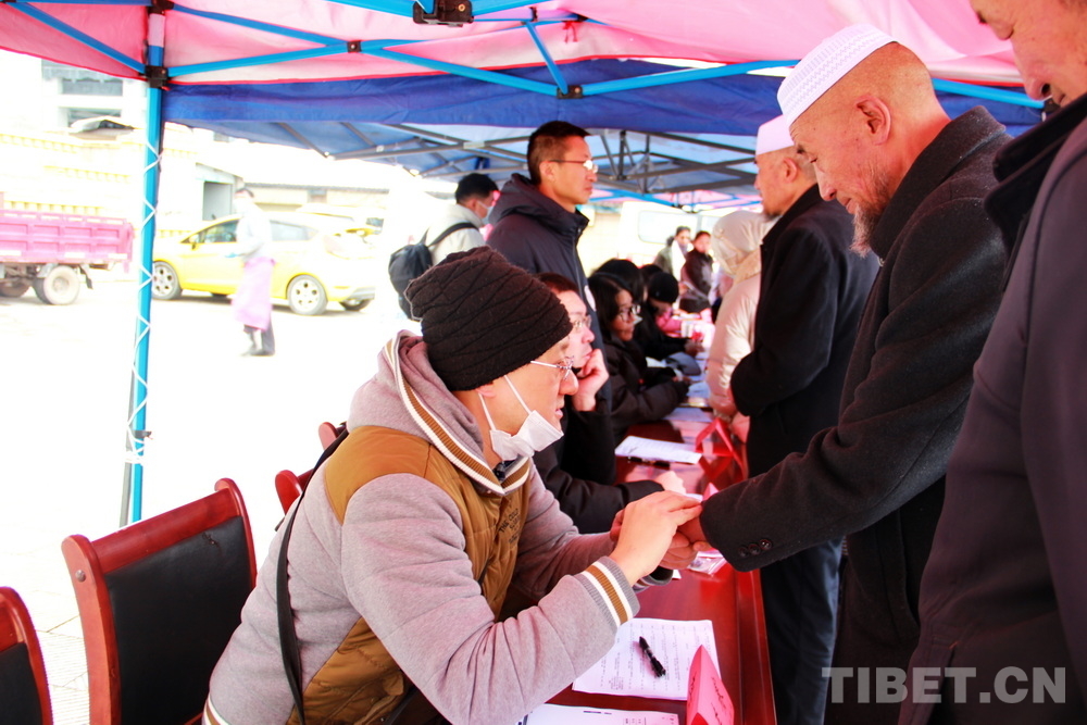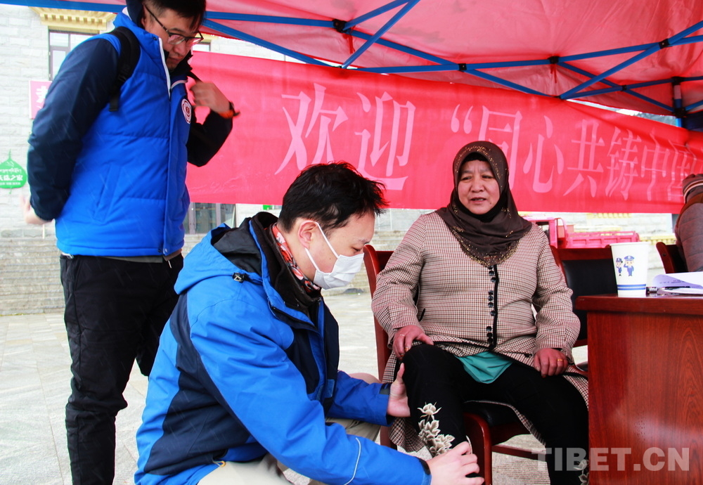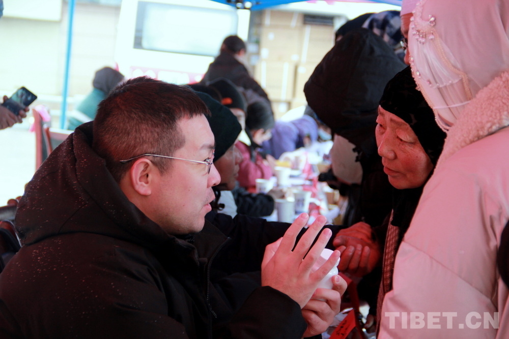 高原的大雪天,在室外即便來回走動(dòng)也感覺格外寒冷。前來問診的患者絡(luò)繹不絕,醫(yī)務(wù)志愿者們堅(jiān)守崗位,身披雪花,腳踩積雪,在翻譯的幫助下不停接診,一坐就是大半天。有的醫(yī)務(wù)志愿者專心接診,渾然不知衣服上已經(jīng)積雪;有的醫(yī)務(wù)志愿者發(fā)現(xiàn)患者不太理解疾病的分科,就同時(shí)擔(dān)起了分診工作;有的醫(yī)務(wù)志愿者自身高反強(qiáng)烈,吸著氧也要堅(jiān)持接診……