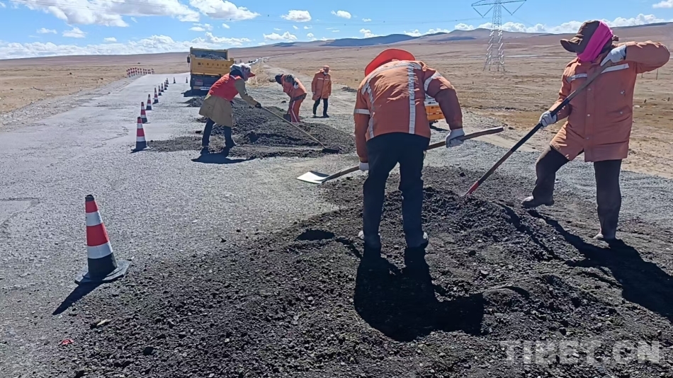 受低溫限制,唐古拉山路段的油路養(yǎng)護季節(jié)性非常強,每年的5至10月是養(yǎng)護的黃金時間。為了能在有限的時間內(nèi)更好地養(yǎng)好公路,每年這個季節(jié),我和工友們都要在凌晨四五點出發(fā),一絲不茍地進(jìn)行日常巡查,對破損的路面進(jìn)行及時修補。每天工作超過十個小時,餓了吃些糌粑,渴了喝點酥油茶,累了就靠在車上休息一會兒。春天,我們處理路面裂縫;夏天,我們清理塌方;冬天,我們與冰雪戰(zhàn)斗。我們?nèi)硇耐度耄们啻汉秃顾刈o這條公路,確保這條至關(guān)重要的運輸動脈能夠抵御極端惡劣氣候的考驗,讓每一輛過往車輛都能安全順暢通行。