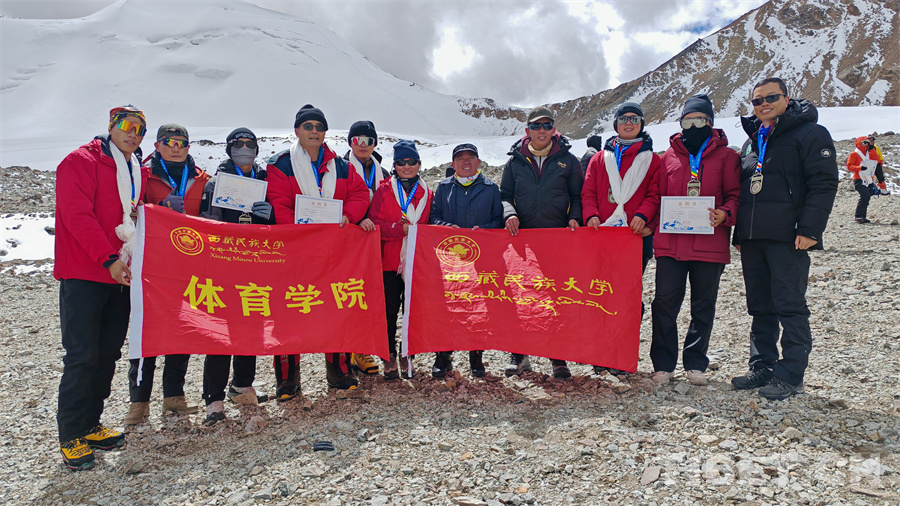 圖為2024第二十一屆中國西藏登山大會(huì)西藏民族大學(xué)部分師生登頂洛堆峰后合影留念,左四為楊建軍教授 攝影:馮重霖