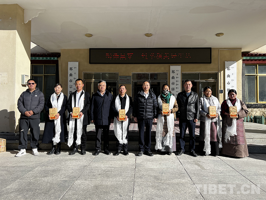 中國(guó)西藏網(wǎng)訊 11月1日,浙江省民宗委、浙江省援藏指揮部、西藏那曲市民委聯(lián)合舉辦“浙那同心石榴紅 民族團(tuán)結(jié)一家親”為主題的“送茶入戶”集中發(fā)放儀式,將普陀山佛協(xié)慈善捐贈(zèng)的14噸優(yōu)質(zhì)低氟邊銷茶發(fā)到色尼區(qū)3664戶、嘉黎縣1338戶、比如縣1485戶農(nóng)牧群眾民手中,解決那曲市6487戶低收入農(nóng)牧民近1年的邊銷茶消費(fèi)量(每戶發(fā)放4斤茶葉),色尼區(qū)、嘉黎縣、比如縣群眾代表共50余人參加。