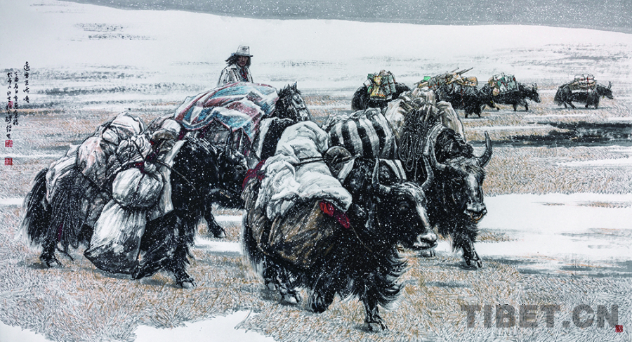 古錦其經(jīng)過長期地深入生活,從真切的感受中醞釀、發(fā)酵并進入創(chuàng)作實踐,再從作品的經(jīng)驗體會重新回到生活中去檢驗、體察、對比,再深入,為此反復(fù)輪回。他通過寫實的描繪手法、濃重的寫意墨色和有力的筆觸刻畫出生活在那塊土地上人們的真實場景,作品呈現(xiàn)其特色的藝術(shù)風(fēng)格和深刻的精神內(nèi)涵,每一幅作品都以濃重飽滿的筆墨構(gòu)筑起整幅畫面的主體造型,猶如搭建起一座堅實聳立的筆墨高峰,使薄薄的宣紙承載著東方美學(xué)的厚重。(中國西藏網(wǎng) 通訊員/趙鵬)