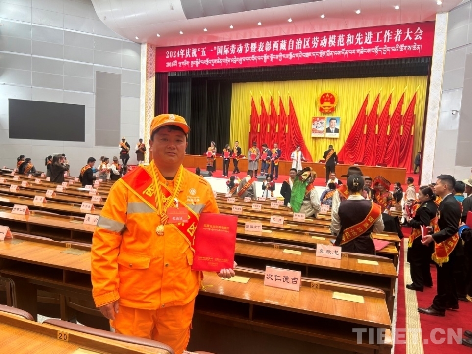 圖為覃春獲得西藏自治區(qū)勞動模范獎?wù)隆?/p>