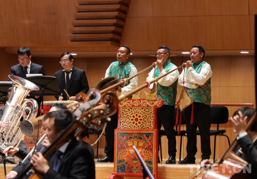 “我們交響樂當(dāng)中使用了不少民族樂器,有藏族的傳統(tǒng)樂器藏大號(hào)、藏鈸、扎木念、赤布(藏鈴),也有二胡、鼓、笛等等,這也使得作品跟其他樂團(tuán)不一樣?!蹦岈斦f,“交響樂有了民族樂器的加入,這種中西結(jié)合讓作品國際范兒中有了民族風(fēng)味,這也是我們所做的一些創(chuàng)新和融合,也展現(xiàn)了西藏音樂特有的魅力?!?/p>