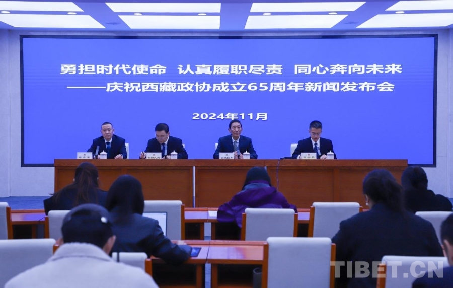 中國西藏網(wǎng)訊 11月18日,慶祝西藏政協(xié)成立65周年新聞發(fā)布會在拉薩舉行。新聞發(fā)言人從堅持黨的領(lǐng)導,把牢方向強根基;強化理論武裝,凝心鑄魂固根本;突出思想引領(lǐng),團結(jié)奮進聚共識;服務(wù)中心大局,協(xié)商議政顯擔當;聚焦民之關(guān)切,履職盡責踐初心;著眼自身建設(shè),守正創(chuàng)新提能力六個方面介紹西藏政協(xié)65年來的工作總體情況。