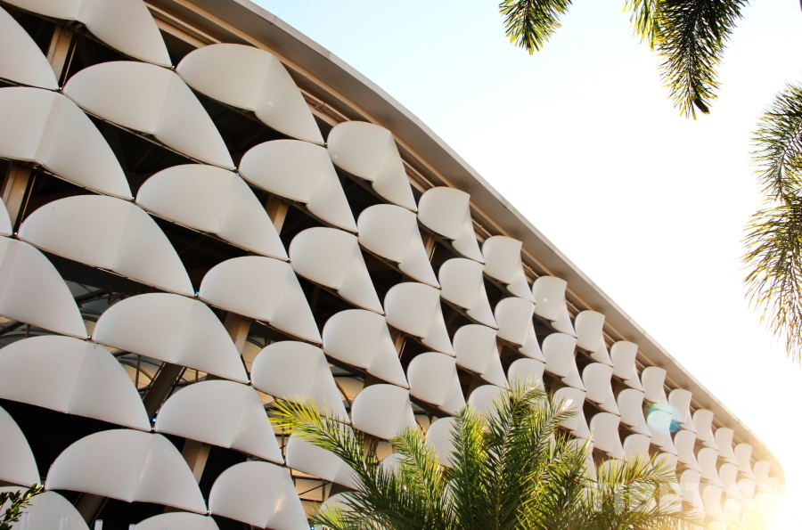 圖為三亞市體育中心體育場(chǎng)外立面層次分明的白鷺膜單元造型 攝影:劉莉