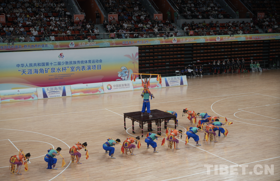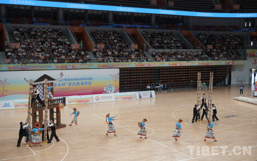 中國西藏網(wǎng)訊 11月24日,第十二屆全國少數(shù)民族傳統(tǒng)體育運(yùn)動(dòng)會(huì)表演項(xiàng)目(室內(nèi))在海南省三亞市體育中心體育館舉行。(中國西藏網(wǎng) 記者/蘇洋)