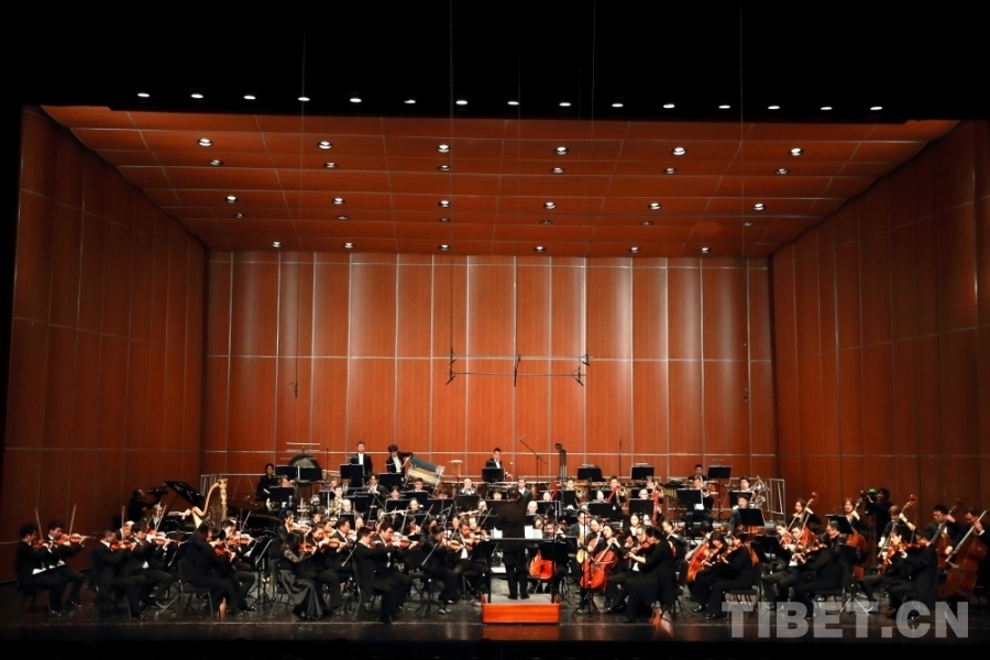 音樂會(huì)上,兩位藏族歌手演唱了交響樂主題曲《金橋》,歌曲高亢嘹亮、曲調(diào)悠揚(yáng)。藏戲、山歌等元素的加入,讓交響樂更加豐富,充滿了濃郁的民族風(fēng)情。