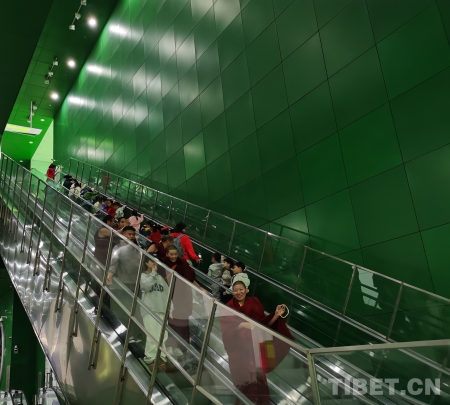 當(dāng)日下午,西藏佛學(xué)院一行來(lái)到中國(guó)科學(xué)技術(shù)館參觀學(xué)習(xí)。走進(jìn)展廳,師生們立即被展陳的航天器材吸引,紛紛上前合影留念。科技館內(nèi)有很多孩子正在參觀,部分外向的孩子熱情地與西藏佛學(xué)院師生們打招呼,師生們也歡喜地回應(yīng)著。雙向扶梯上,孩子們熱情洋溢地上行,恰逢佛學(xué)院的師生們下行,彼此擦肩而過(guò)、揮手示意。