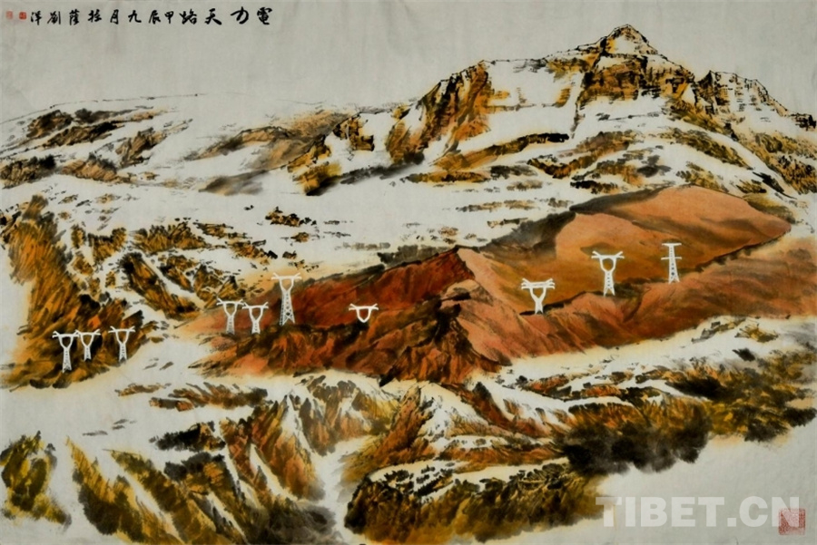 記者:路在腳下,筆隨路走。您的作品中不乏公路、鐵路、橋梁、機(jī)場(chǎng)等西藏現(xiàn)代化交通元素,創(chuàng)作足跡也遍布西藏七市地。如何理解以道路為代表的西藏交通變遷帶給西藏人民的變化?