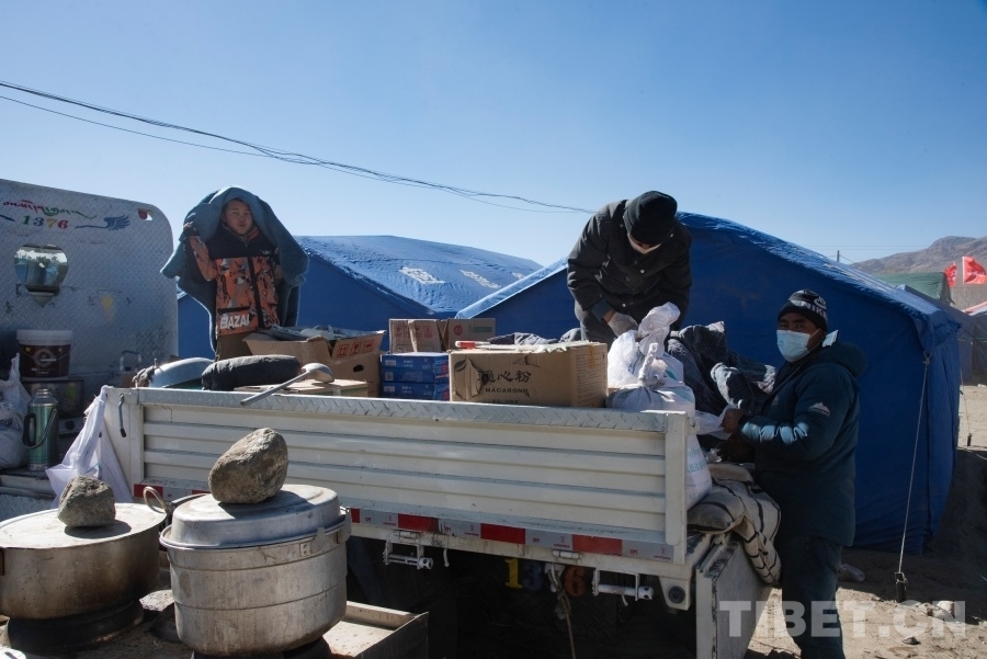圖為森嘎村受災(zāi)安置點群眾正在盤點家中物資 攝影:趙振宇
