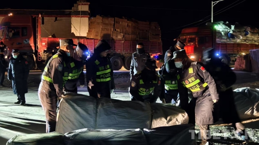 定日縣長所鄉(xiāng)雜村是此次地震受災(zāi)最嚴(yán)重的區(qū)域之一,為了保證寒冷的天氣下群眾有避風(fēng)休息處所,1月7日20時,參與救援的日喀則邊境管理支隊增援民警,等救災(zāi)物資抵達(dá)后迅速展開帳篷搭建工作。