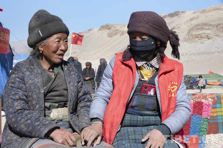 楚卡村村支書索朗正在和黨員志愿者們一起為受災安置點的帳篷進行加固。索朗告訴記者,2015年尼泊爾發(fā)生“4·25”地震時楚卡村受到了較大的影響,西藏自治區(qū)黨委和政府在災后對楚卡村房屋進行了加固和重建,正是得益于黨的好政策,才讓楚卡村在本次地震中沒有人員傷亡,房屋也沒有嚴重的坍塌。雖然楚卡村群眾經(jīng)歷過較大的地震,但在這次地震發(fā)生后群眾的恐慌情緒還是存在的,村內(nèi)的黨員干部們第一時間將安置措施及情況通報給村民,雖然他們現(xiàn)在仍然居住在安置帳篷內(nèi),但他們知道將很快住上板房,對未來的重建充滿了期待。