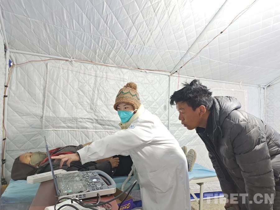 1月13日,記者來到定日縣曲洛鄉(xiāng)仁果村受災(zāi)群眾活動(dòng)板房安置點(diǎn),看到了設(shè)在這里的阜康醫(yī)院臨時(shí)醫(yī)療點(diǎn),副主任醫(yī)師全雄杰正在為村里的小男孩看病,作為“蹲點(diǎn)”醫(yī)生,他已在這里服務(wù)2天,“咳嗽嗎?流鼻涕嗎?嗓子疼嗎?”作為朝鮮族的全雄杰,正耐心地用藏語跟小孩交流的畫面著實(shí)讓人感動(dòng)。
