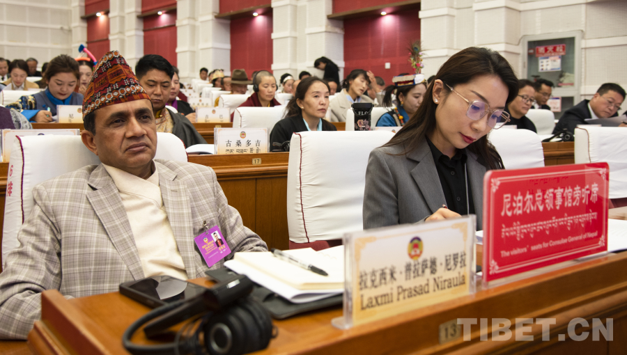 尼泊爾駐拉薩總領(lǐng)事拉克西米·普拉薩德·尼羅拉應(yīng)邀旁聽(tīng)開(kāi)幕會(huì)。(中國(guó)西藏網(wǎng) 記者/趙振宇 旦曲 德吉卓瑪)