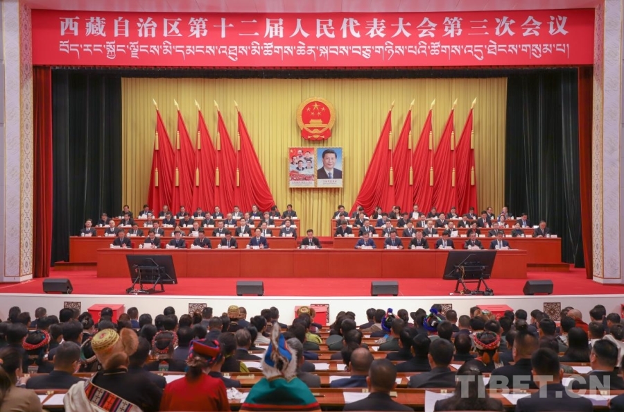 圖為西藏自治區(qū)十二屆人大三次會(huì)議舉行第三次全體會(huì)議