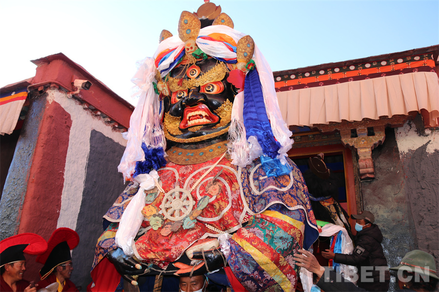 圖為從八思巴護(hù)法殿迎請(qǐng)出的大黑天神像 攝影:王妍丹