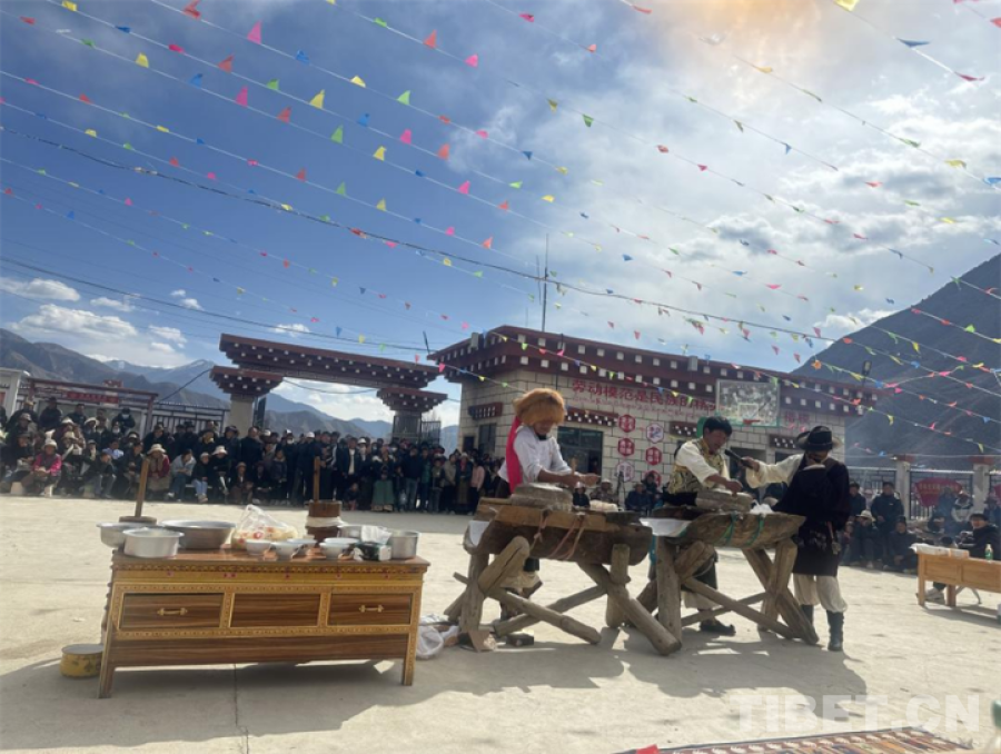 圖為洛隆縣俄西鄉(xiāng)次瓊村開展“紅色昌都·振興奮進”“麥韻匠心”手磨糌粑技能大賽