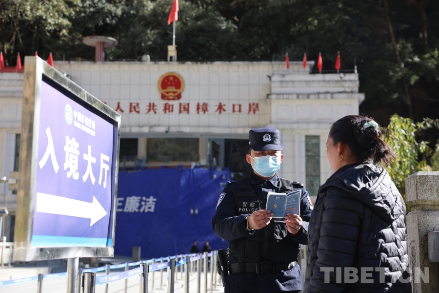 圖為聶拉木邊檢站民警對入境旅客進行驗放