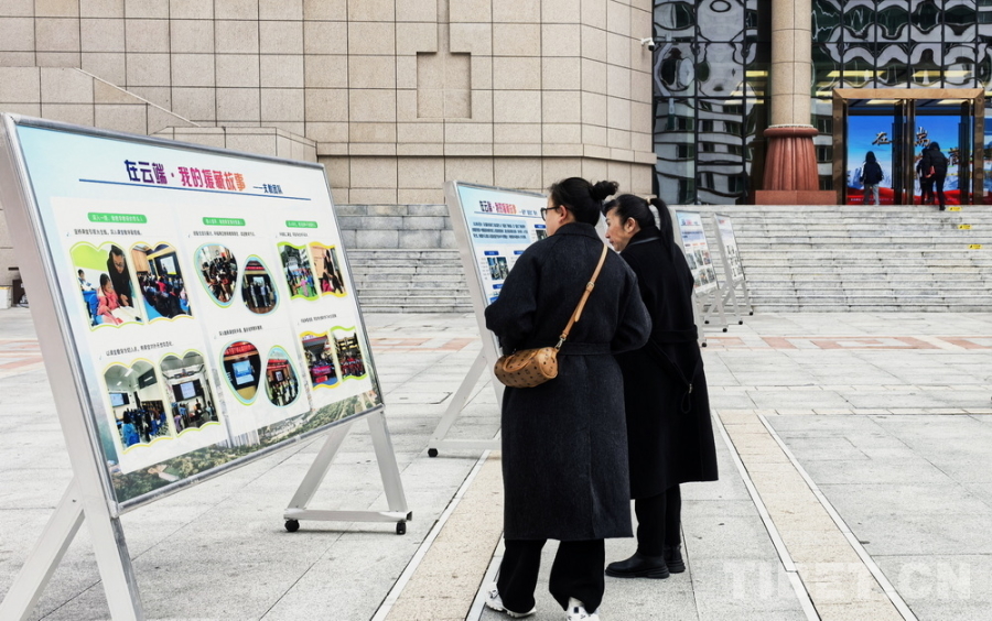 圖為“在云端·我的援藏故事”宣傳活動場外,行人正在觀看展板 攝影:劉莉