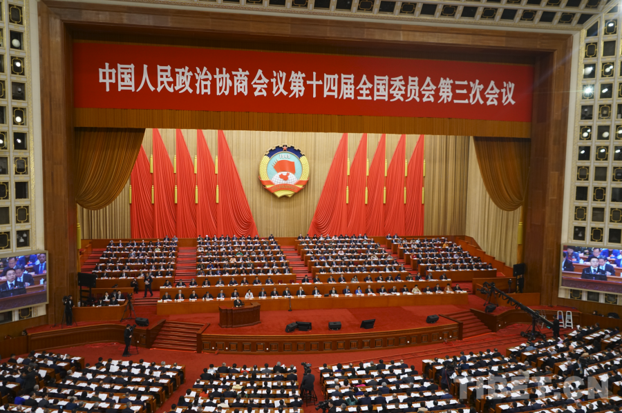 圖為全國(guó)政協(xié)十四屆三次會(huì)議第二次全體會(huì)議現(xiàn)場(chǎng) 攝影:王妍丹