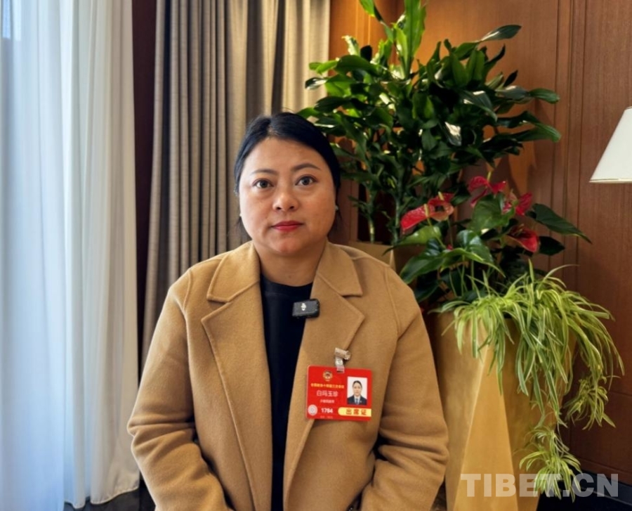 圖為兩會(huì)期間,白瑪玉珍接受中國西藏網(wǎng)記者采訪