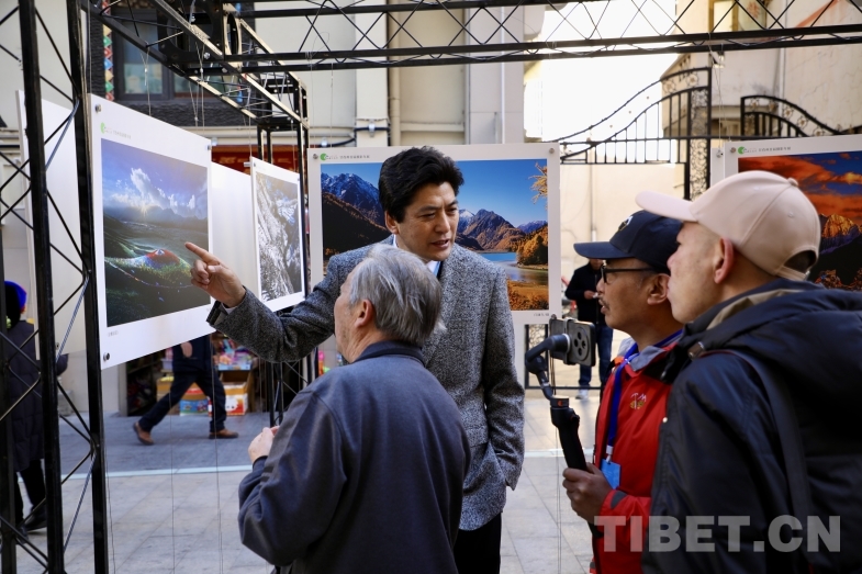 圖為甘孜州政協(xié)副主席、州文化廣播電視和旅游局黨組書記、局長劉洪介紹攝影作品 攝影:龍真多吉