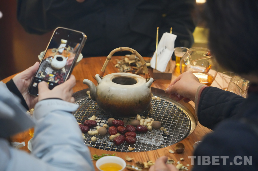 圖為羅布央宗(中)和醫(yī)療志愿者一起炒茶 攝影:王茜