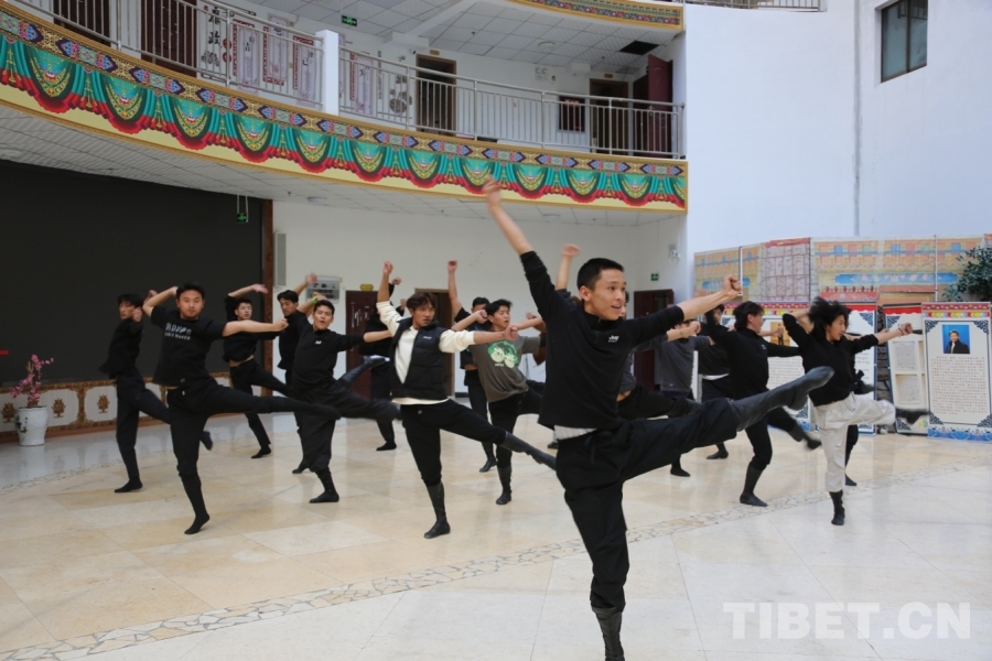 圖為正在排練的男子群舞《達(dá)東查姆》