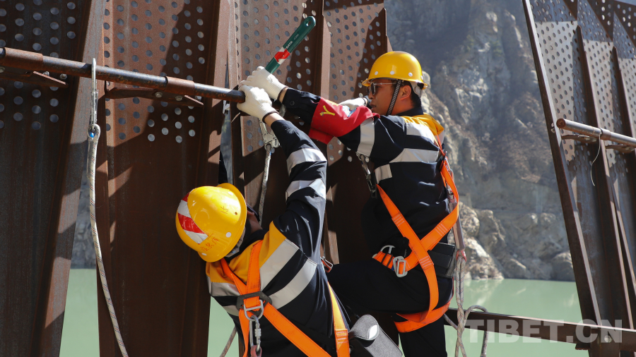高空峽谷風急聲勁,每一位加查路橋維修工區(qū)上拱的職工都要經(jīng)歷身體因恐高眩暈和不適,再到逐步適應和習慣,最終喜歡爬到橋的最高處眺望雅魯藏布江蜿蜒而過的過程。