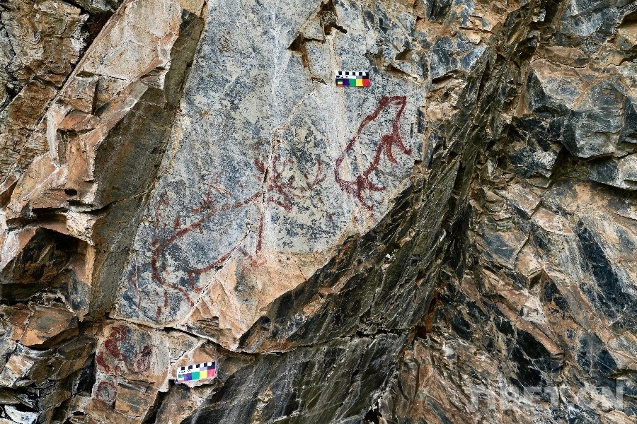甘孜南路的涂繪類巖畫也揭示出兩個現(xiàn)象:一是舊石器人群在青藏高原消失的時間非常晚;二是從巖畫分布來推斷,這群人是從低海拔地區(qū)遷徙上來的,這意味著甘孜地區(qū)人類交流活動可追溯到史前的舊石器時代。