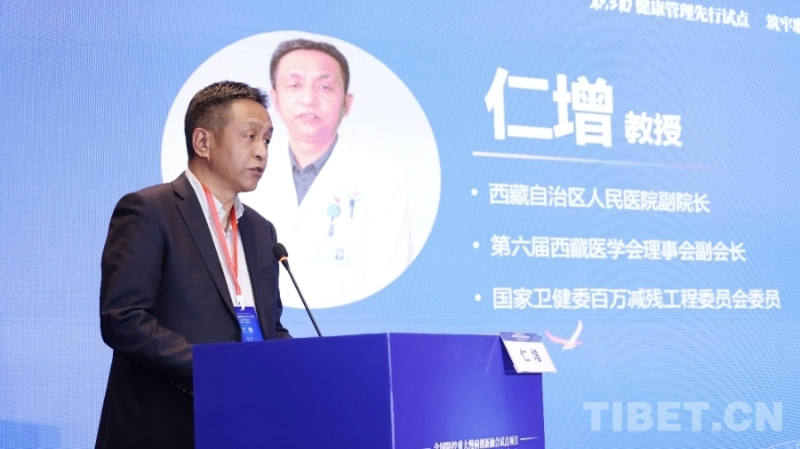 圖為西藏自治區(qū)人民醫(yī)院副院長、第六屆西藏醫(yī)學(xué)會理事會副會長、國家衛(wèi)健委百萬減殘工程委員會委員仁增教授發(fā)言