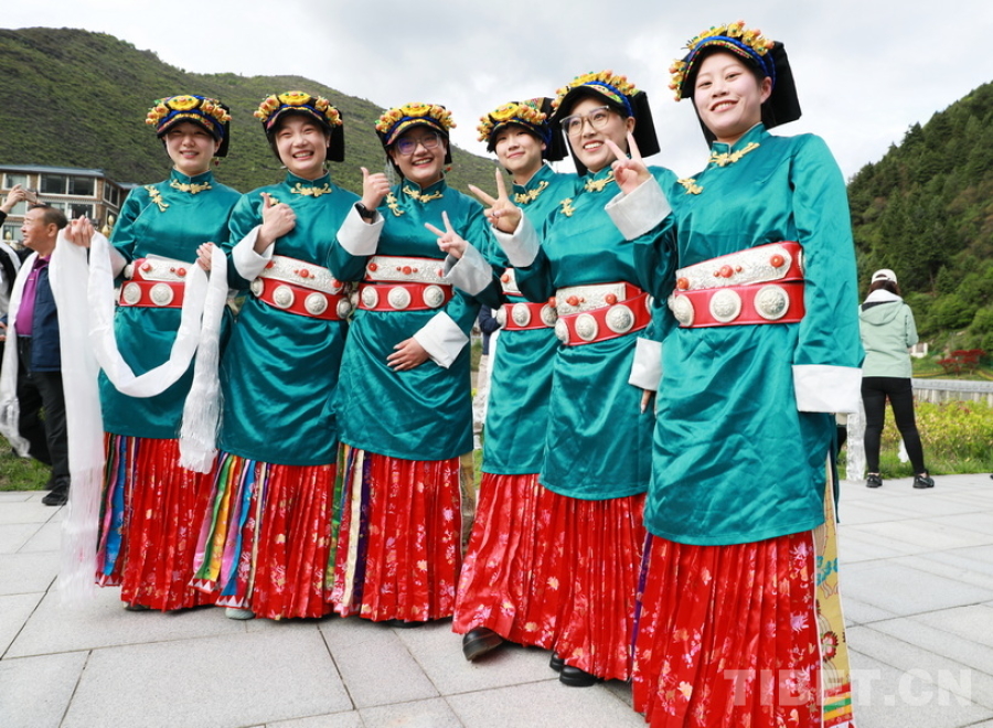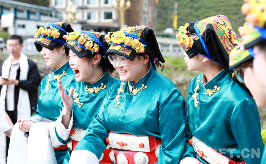 圖為身著嘉絨藏族盛裝的四川省阿壩州女孩們迎接“同心·共鑄中國(guó)心”大型公益活動(dòng)醫(yī)務(wù)志愿者們的到來 攝影:劉莉
