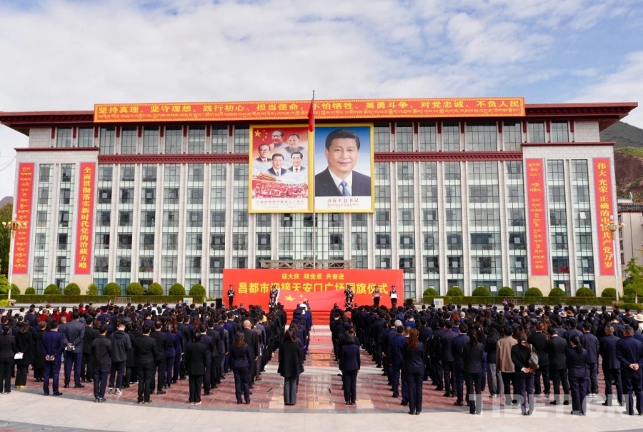 圖為昌都市迎接天安門廣場(chǎng)國(guó)旗儀式現(xiàn)場(chǎng) 攝影:群旦次仁
