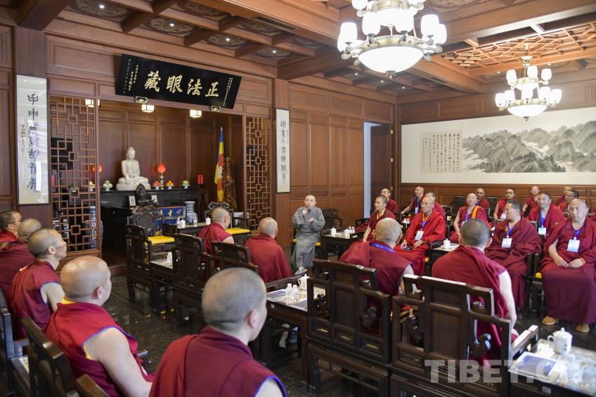 圖為西藏佛學(xué)院師生在靈隱寺座談交流 攝影:趙振宇