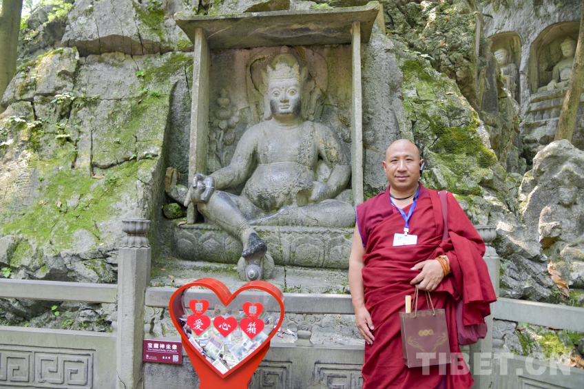 “東晉咸和元年(公元326年),西印度僧人慧理和尚在杭州西湖以西,背靠北高峰修建靈隱寺,距今已有約一千七百年的歷史。千年來靈隱寺不僅香火不斷,更吸引了眾多文人墨客來此,令此處成為文化大觀。”在靈隱寺大殿前,一灰一紅兩種僧衣相互映襯,訴說著藏傳佛教、漢傳佛教千年的情誼。