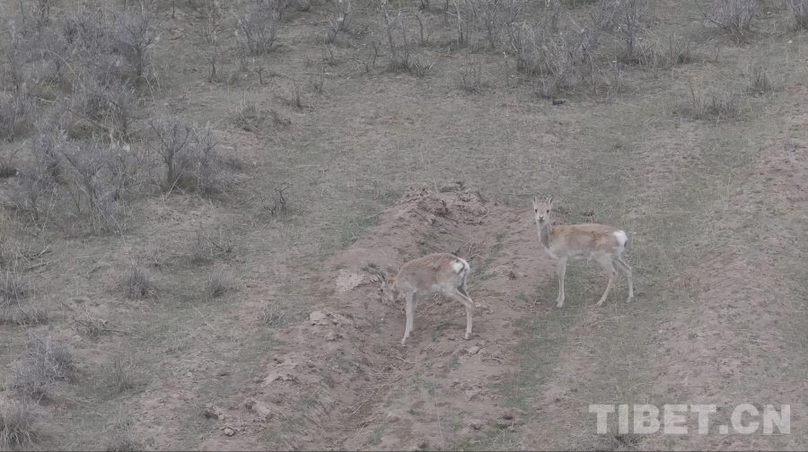 圖為無(wú)人機(jī)捕捉到的兩只雄性普式原羚 青海省文化和旅游廳供圖