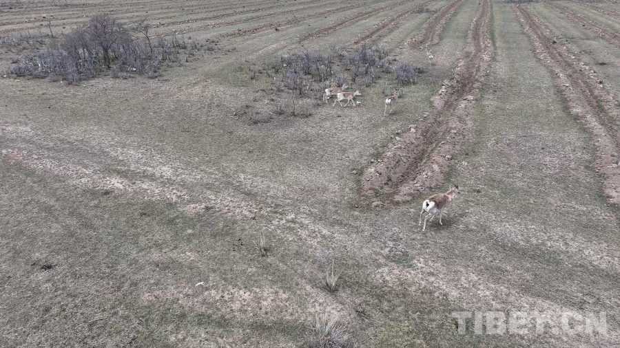 圖為無(wú)人機(jī)捕捉到的珍貴的野生普式原羚影像,奔跑時(shí),尾部標(biāo)志性的“心形白斑”清晰可見(jiàn) 青海省文旅廳供圖
