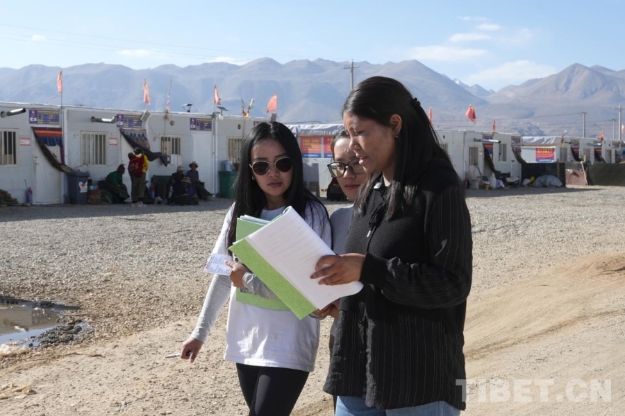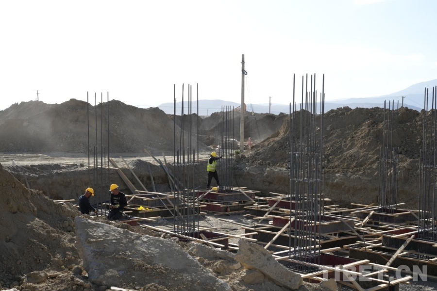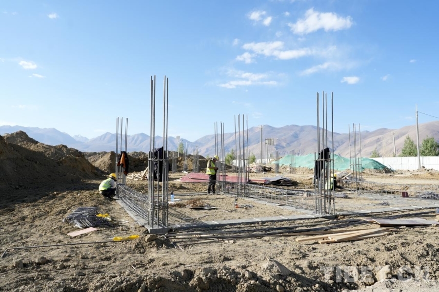 在雜村,一座座安置板房間,婦女們圍坐一起編織氆氌,孩子們玩鬧嬉戲,時有工作人員入戶進行安全排查、普法宣傳,生活一如往常平靜安寧。而在距離安置點不遠處的工地上,卻呈現出一片繁忙的景象——運輸車穿梭其間,機器轟鳴,工人忙著將箍筋固定在地基中,雜村重建工作正有序而迅速地推進著。