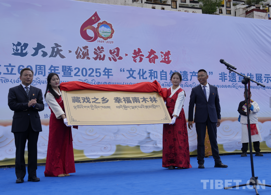 圖為活動(dòng)現(xiàn)場(chǎng)“藏戲之鄉(xiāng) 幸福南木林”揭牌儀式 主辦方供圖