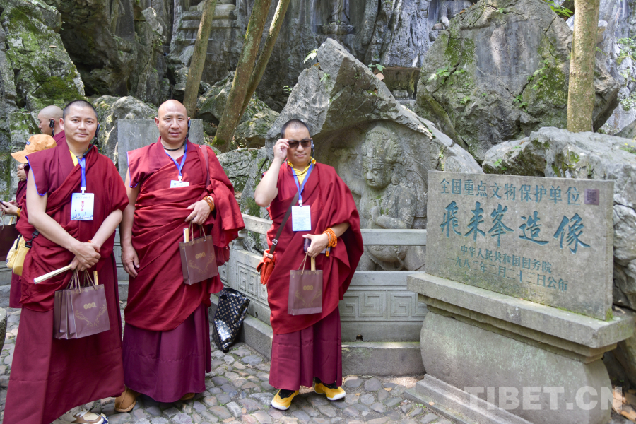 圖為西藏佛學(xué)院師生在杭州參觀飛來(lái)峰造像 攝影:趙振宇