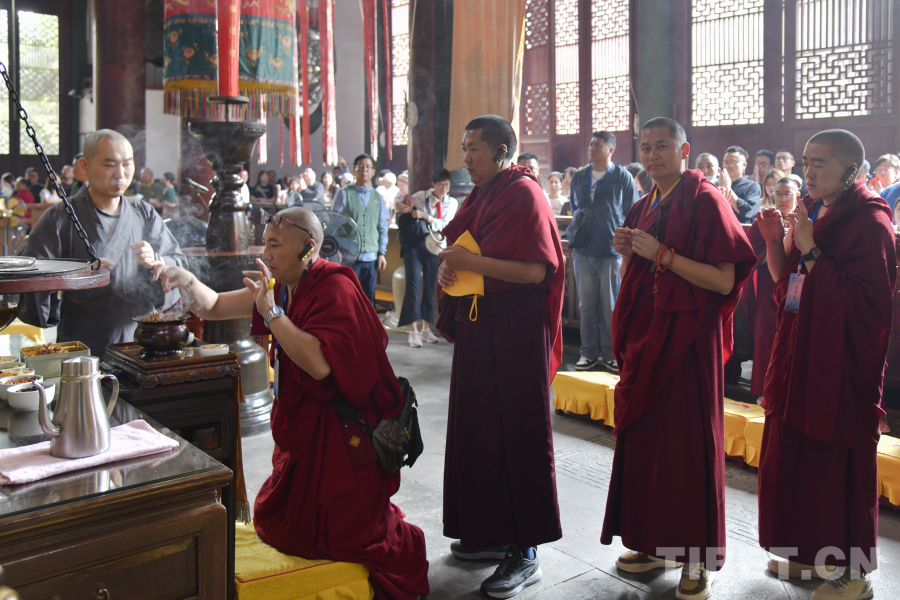 圖為西藏佛學(xué)院師生在杭州靈隱寺祈?!z影:趙振宇