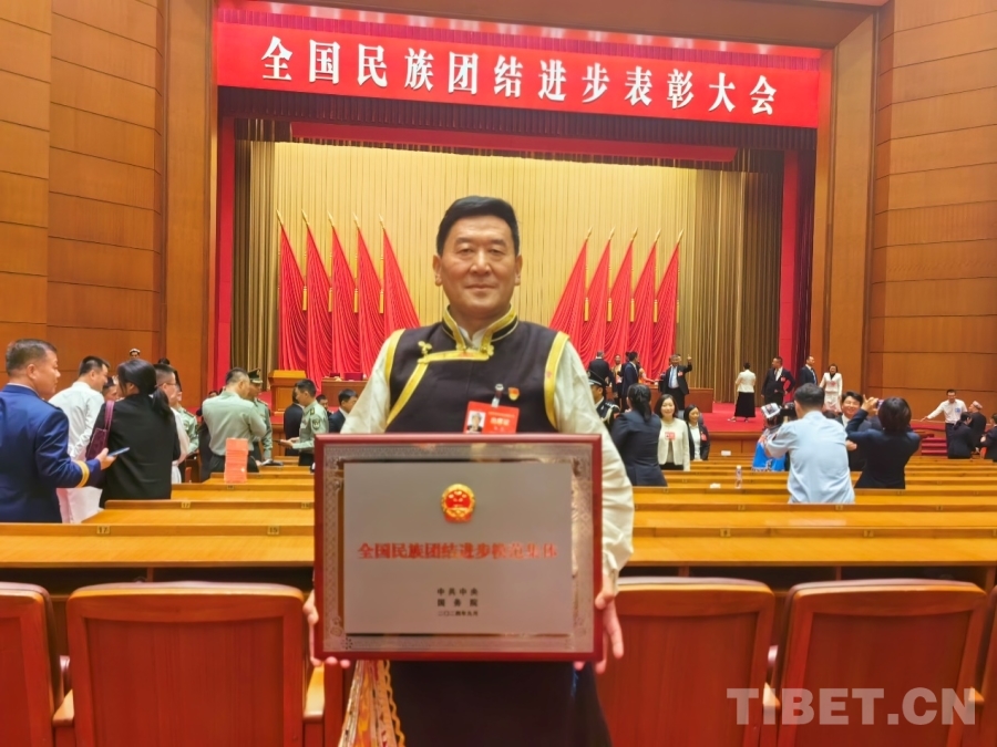 圖為邊巴在全國(guó)民族團(tuán)結(jié)進(jìn)步表彰大會(huì)現(xiàn)場(chǎng) 受訪者供圖