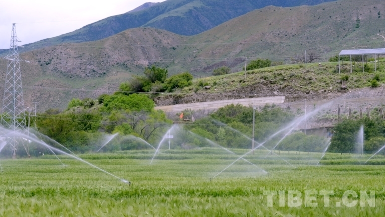 中國西藏網(wǎng)訊 在西藏自治區(qū)昌都市洛隆縣俄西鄉(xiāng)的5G+智慧農(nóng)業(yè)生產(chǎn)示范基地里,隨著負(fù)責(zé)人在按鈕上輕輕一點(diǎn),噴淋設(shè)備啟動,細(xì)密的水珠從噴頭均勻地噴淋出來,讓地里的青稞苗顯得越發(fā)翠綠。