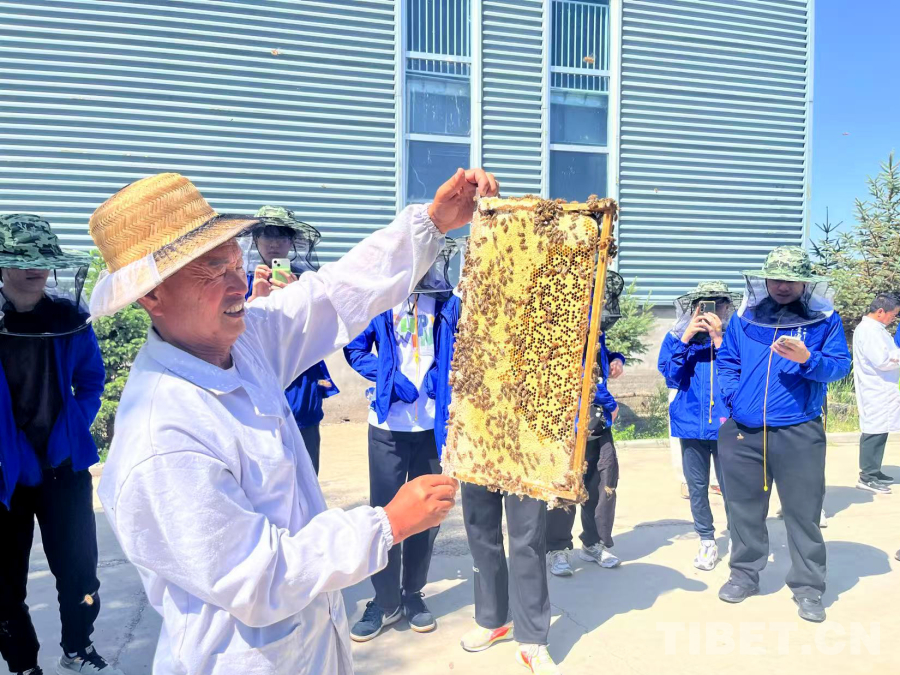 小小中華蜜蜂的“勞動成果”也不容小覷。在第44屆國際養(yǎng)蜂大會上,青藏華峰帶著高原蜂蜜斬獲國際金獎,完勝當(dāng)時來自50多個國家和地區(qū)的上千個蜂蜜產(chǎn)品。如今,在政府的重視下,搭建平臺讓蜂蜜得到更好的展示,讓青藏華峰的品牌之路走得更穩(wěn)。當(dāng)工作人員現(xiàn)場打開蜂箱,展示如何采集蜂蜜時,青少年們紛紛上前嘗試,親身體驗養(yǎng)蜂的樂趣。當(dāng)金黃的蜂蜜緩緩流出,空氣中彌漫著香甜氣息,學(xué)生們臉上洋溢著興奮與驚喜,第一次吃到從蜂巢里取出的新鮮蜂蜜,感受大自然饋贈的美好。